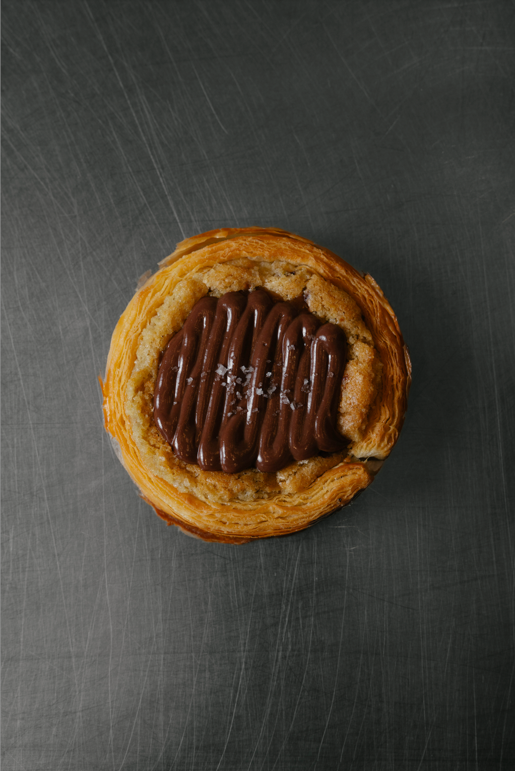 Le Swooky c'est un gâteau façon cookie, qu'on pose au milieu de la table et qu'on se partage. Il est composé de quatre de nos cookies best-sellers : le chewy, le double crispy, le matchy et le sunny. Les pâtes sont cuites ensemble pour ne former qu'un.
